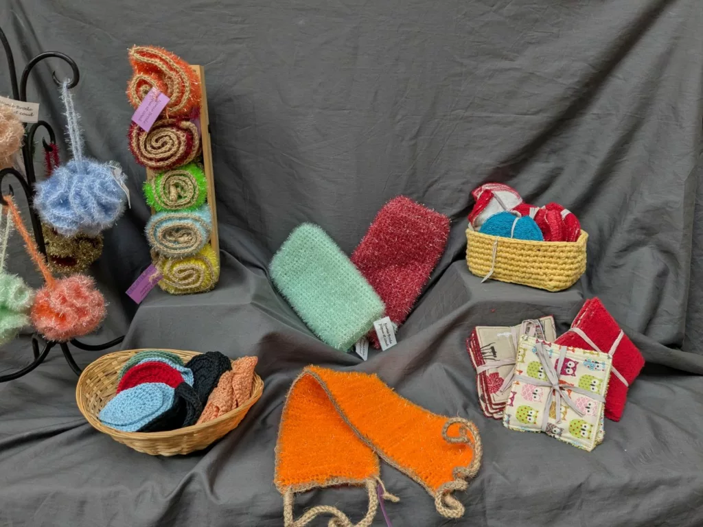 - Toucher les matières : Découvrez la qualité de nos éponges, de nos cotons et de nos laines sélectionnées avec soin.